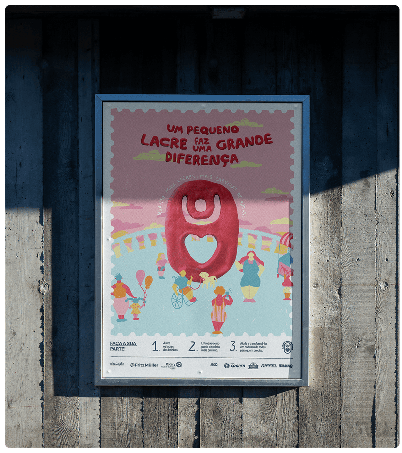 O cofrinho de coleta, protagonista físico da campanha, leva a causa para dentro das casas e escolas. Desde 2012, mais de 43 toneladas de lacres já foram revertidas em mais de 640 cadeiras de rodas, provando que a cada edição o design fortalece a causa e ajuda a reduzir desigualdades.